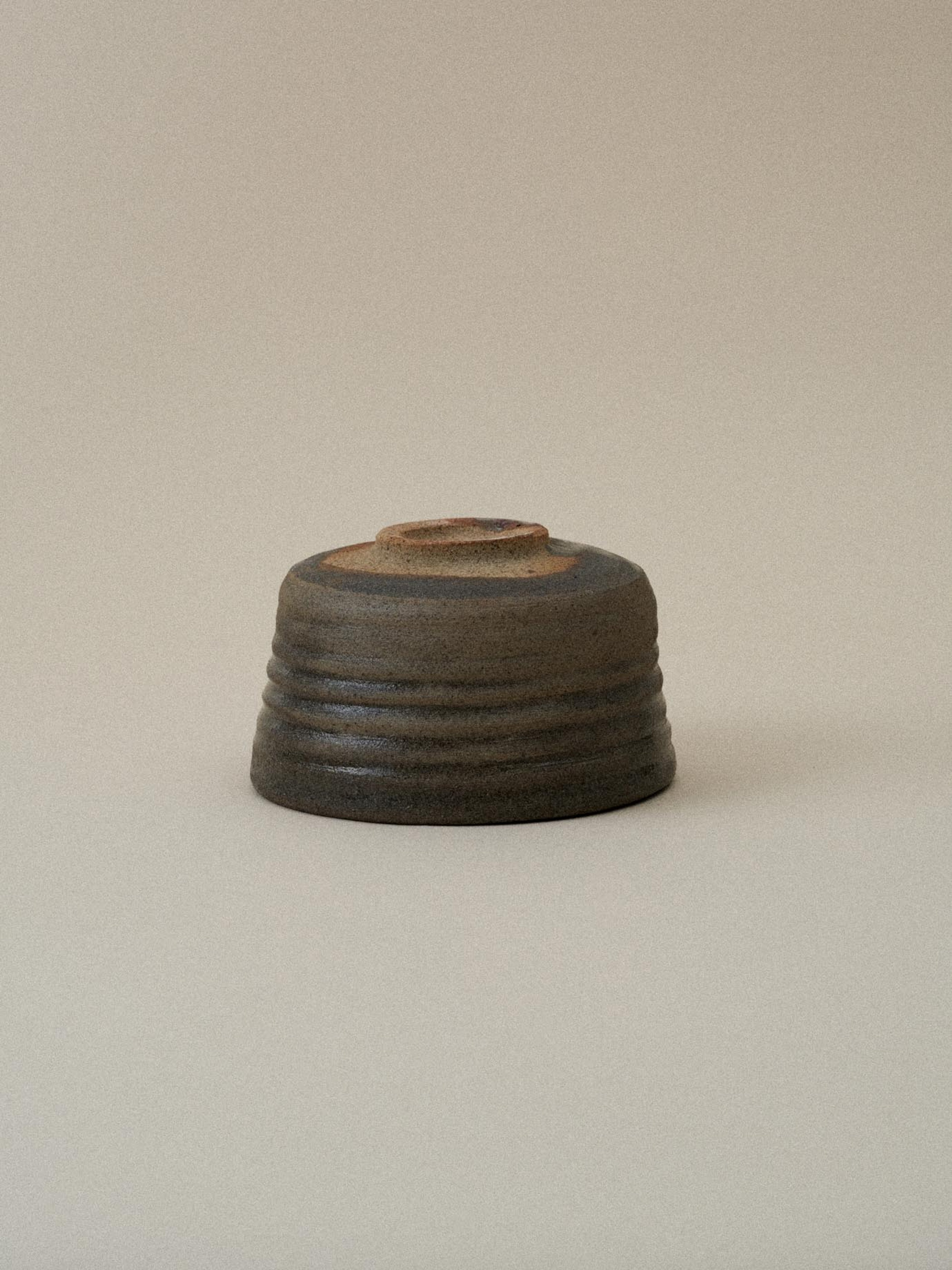 경상남도 김해를 기반으로 활동하는 김태수 도예가의 사발입니다. 스튜디오 주변에서 직접 채취한 흙으로 빚은 도자 사발을 약 36간에 걸쳐 전통 흙가마로 구워냅니다. 흙가마에서 구워내는 과정에서는 전기 가마처럼 일정한 온도를 유지하기가 어렵기 때문에 유약이 고르게 퍼지지 않고, 자연스럽게 흐르거나 굽는 과정에서 예상치 못한 색상과 질감이 생성됩니다. 이러한 불규칙한 유약 흐름과 색상 변화는 한국 전통 도자기의 매력적인 요소입니다. 수작업으로 만들어지기 때문에 찻사발의 형태가 완벽하게 대칭적이지 않으며, 다소 투박하고 소박한 미를 가지고 있습니다.