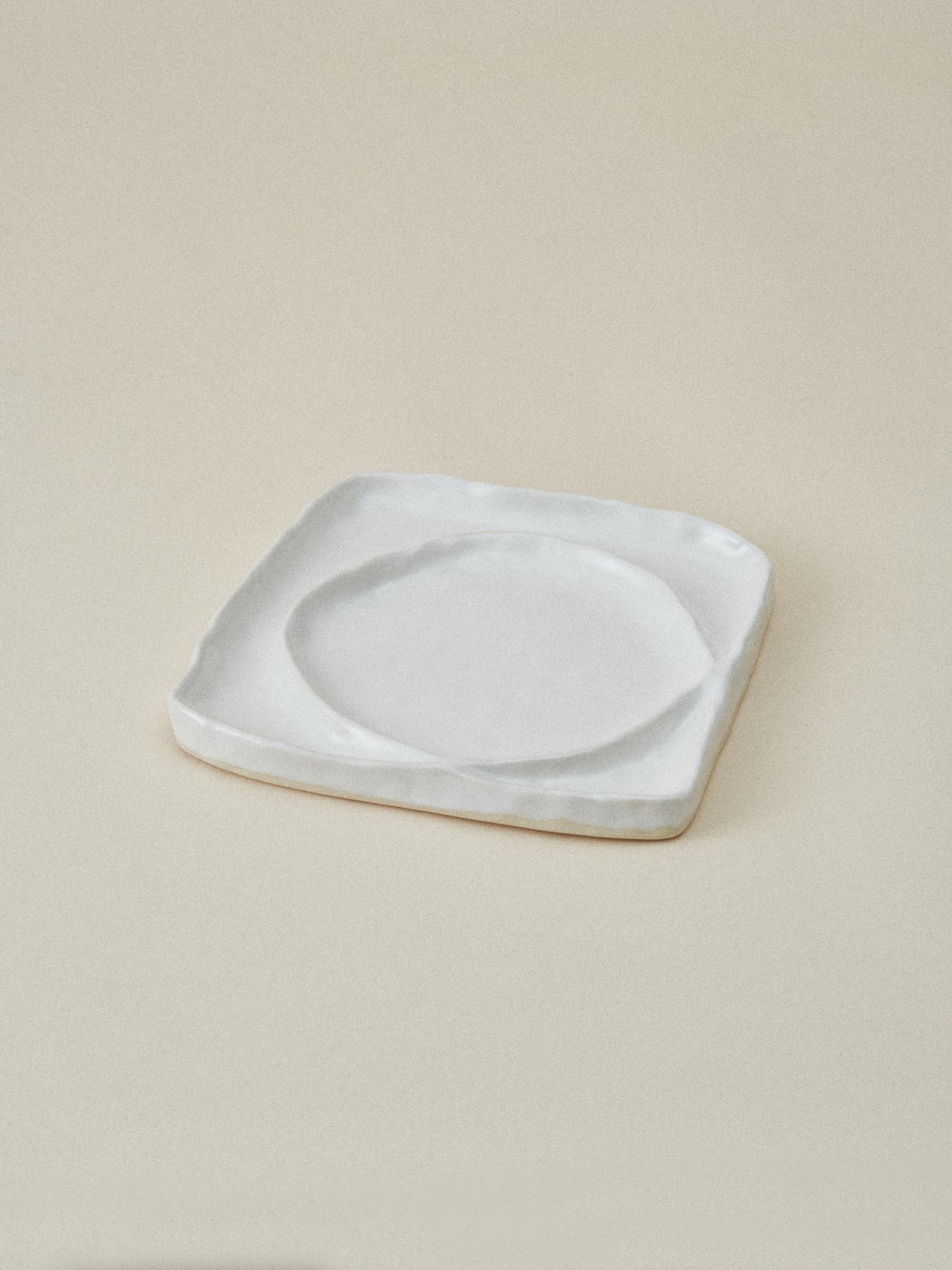 Inspired by a white canvas and the natural grooves of unrefined lines, this handmade plate is part of our first collaboration series with Pollygarden.