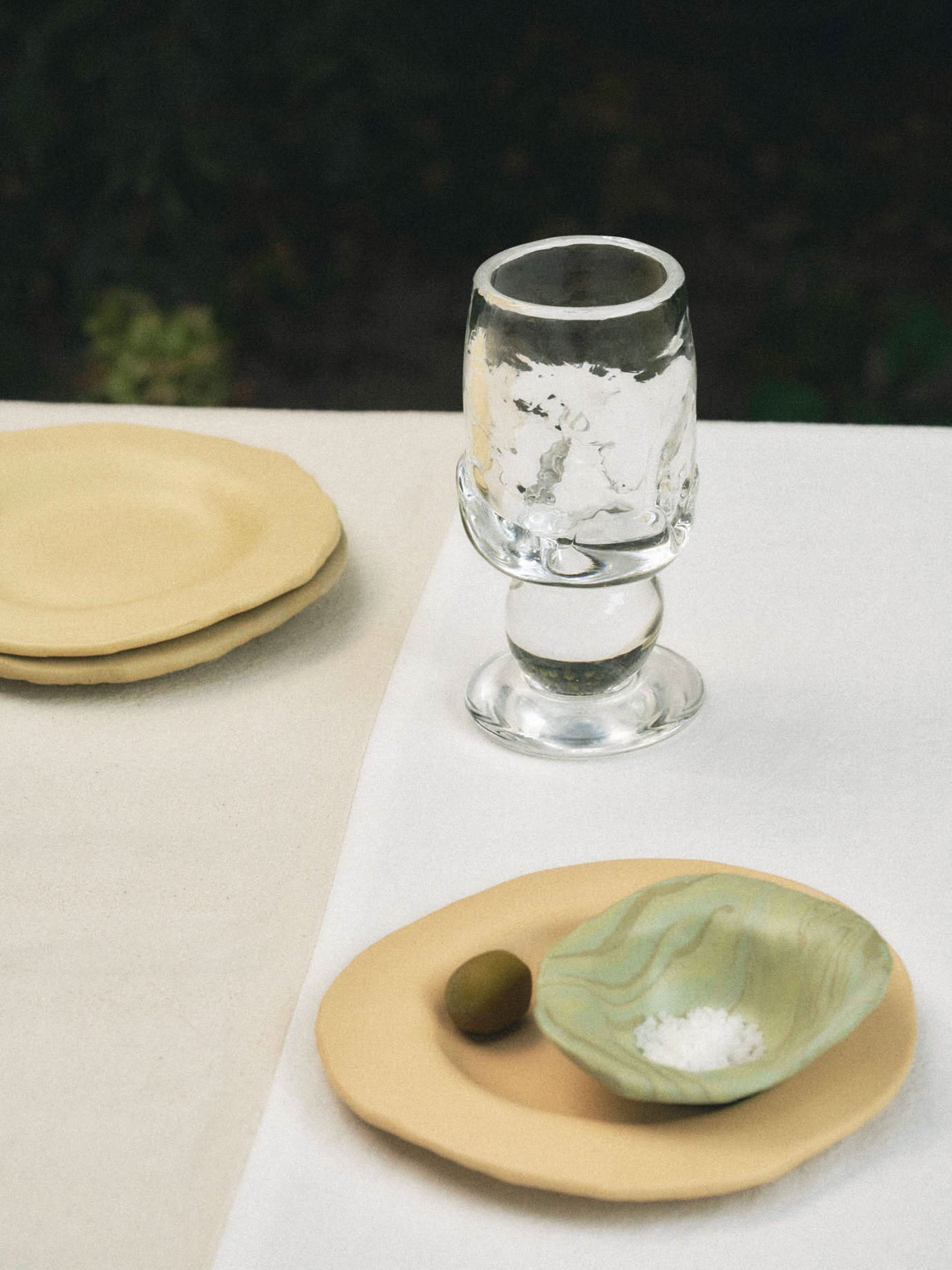 Please hand wash with a soft sponge. Avoid pouring hot water into the glass, and do not use it in a microwave, oven, or dishwasher. Natural residues of sand, stones, and wood from the production process may remain, and the experimental techniques used can result in air bubbles, sharp edges, or scorch marks. These features are a natural part of the process, as the glass is blown between stones to achieve its unique shape. Consider these elements as signs of handmade craftsmanship, showcasing the beauty of natural materials. Due to the delicate nature of glass, exchanges and refunds are not available. Hand-blown in Poland.