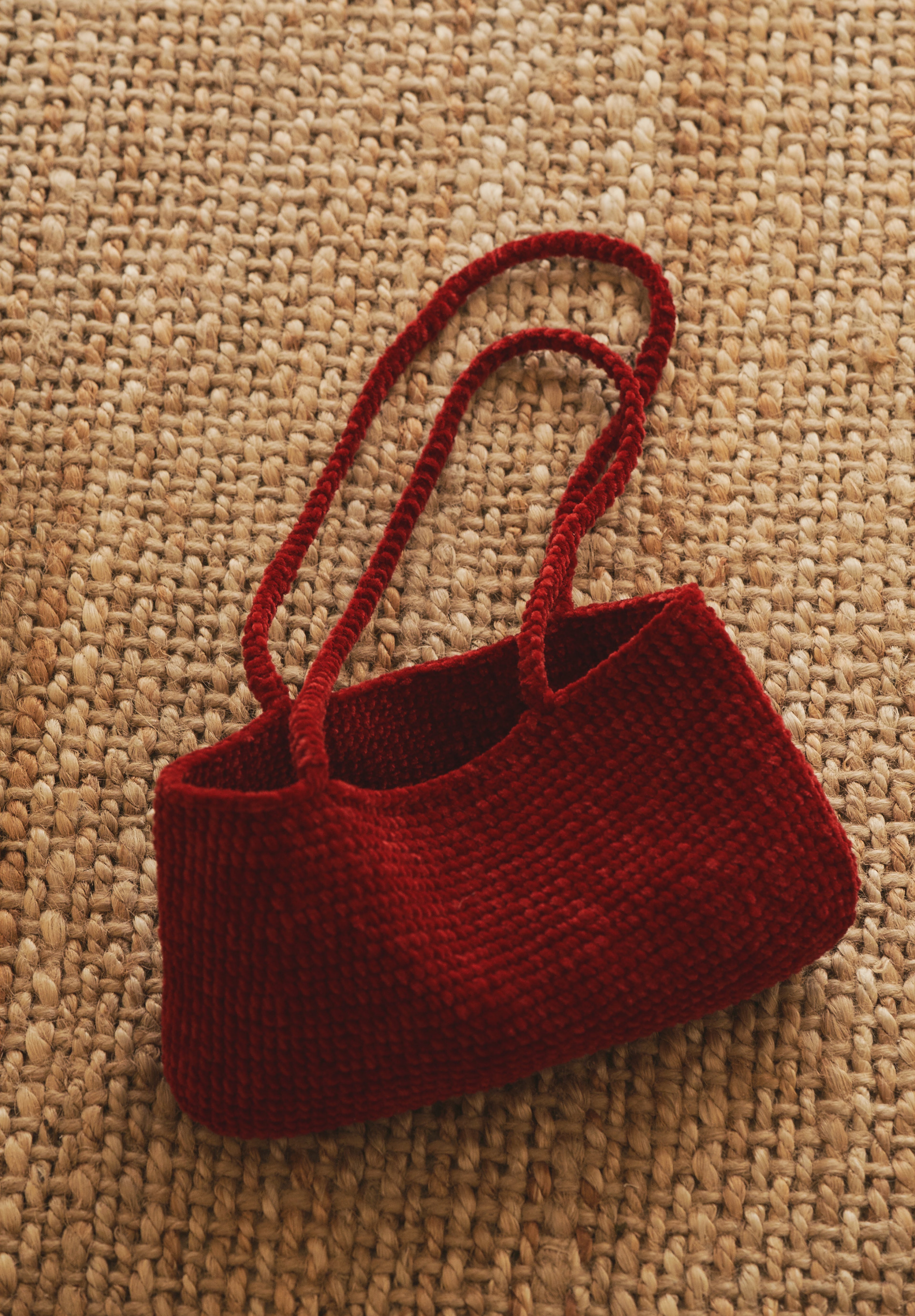 Made in collaboration with Seoul-based knit artist Hyesim Park, this shoulder bag is hand-knitted with Japanese velvet yarn. Though soft to the touch, the knitting technique ensures lasting durability. However, due to the nature of knit bags, the shoulder straps may naturally stretch if carrying heavy items.
