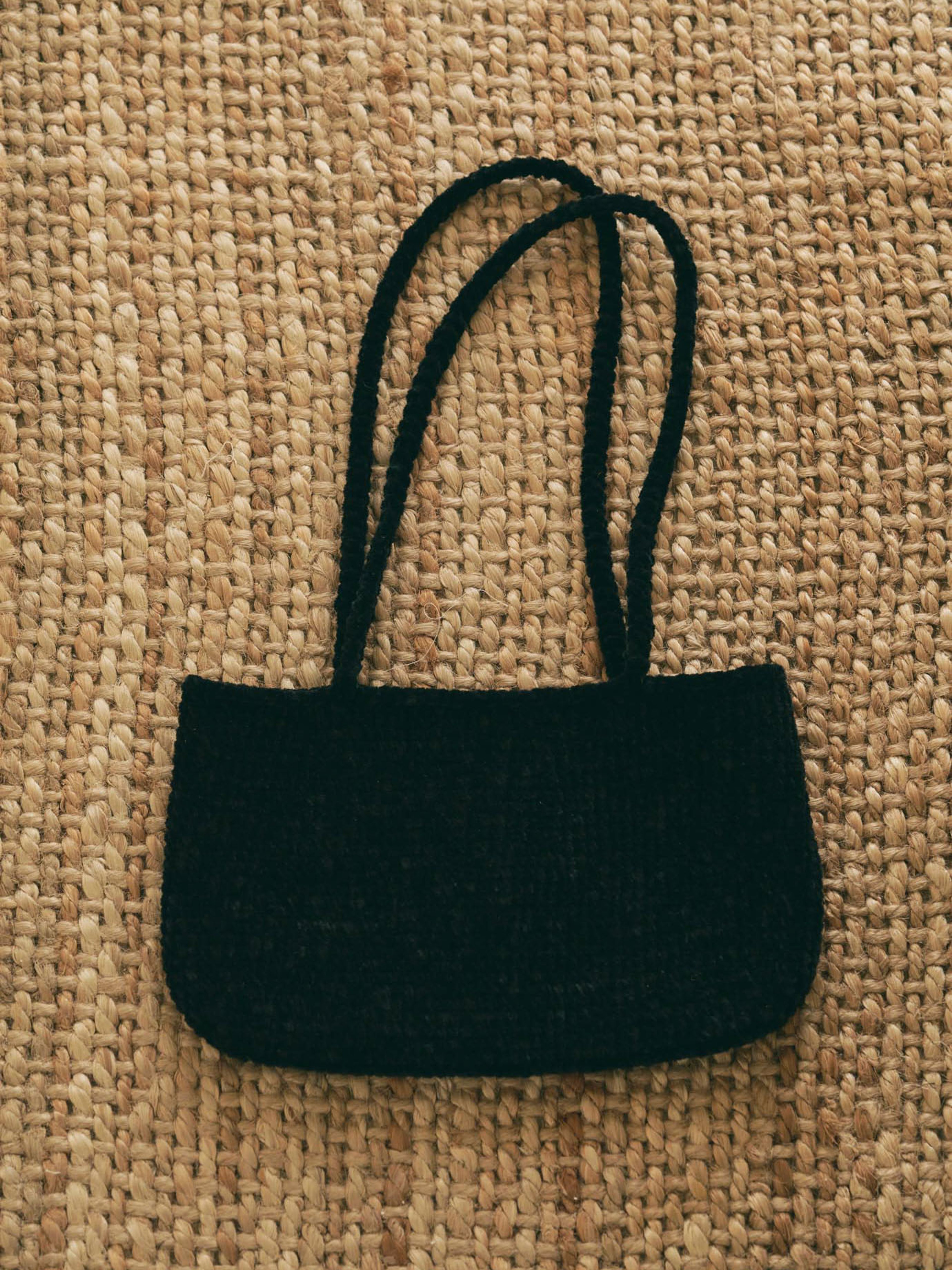 Made in collaboration with Seoul-based knit artist Hyesim Park, this shoulder bag is hand-knitted with Japanese velvet yarn. Though soft to the touch, the knitting technique ensures lasting durability. However, due to the nature of knit bags, the shoulder straps may naturally stretch if carrying heavy items.