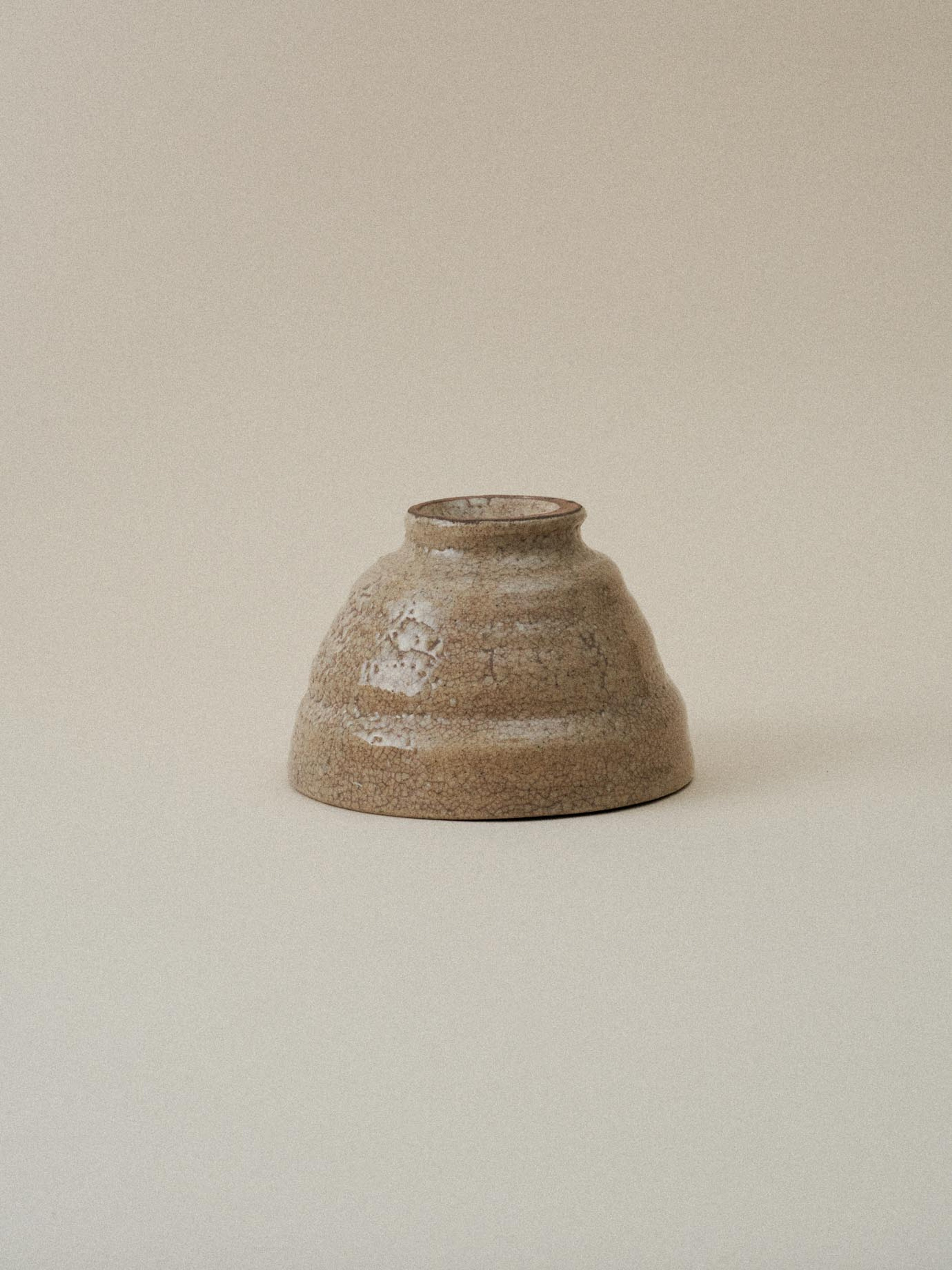경상남도 김해를 기반으로 활동하는 김태수 도예가의 사발입니다. 스튜디오 주변에서 직접 채취한 흙으로 빚은 도자 사발을 약 36간에 걸쳐 전통 흙가마로 구워냅니다. 흙가마에서 구워내는 과정에서는 전기 가마처럼 일정한 온도를 유지하기가 어렵기 때문에 유약이 고르게 퍼지지 않고, 자연스럽게 흐르거나 굽는 과정에서 예상치 못한 색상과 질감이 생성됩니다. 이러한 불규칙한 유약 흐름과 색상 변화는 한국 전통 도자기의 매력적인 요소입니다. 수작업으로 만들어지기 때문에 찻사발의 형태가 완벽하게 대칭적이지 않으며, 다소 투박하고 소박한 미를 가지고 있습니다.